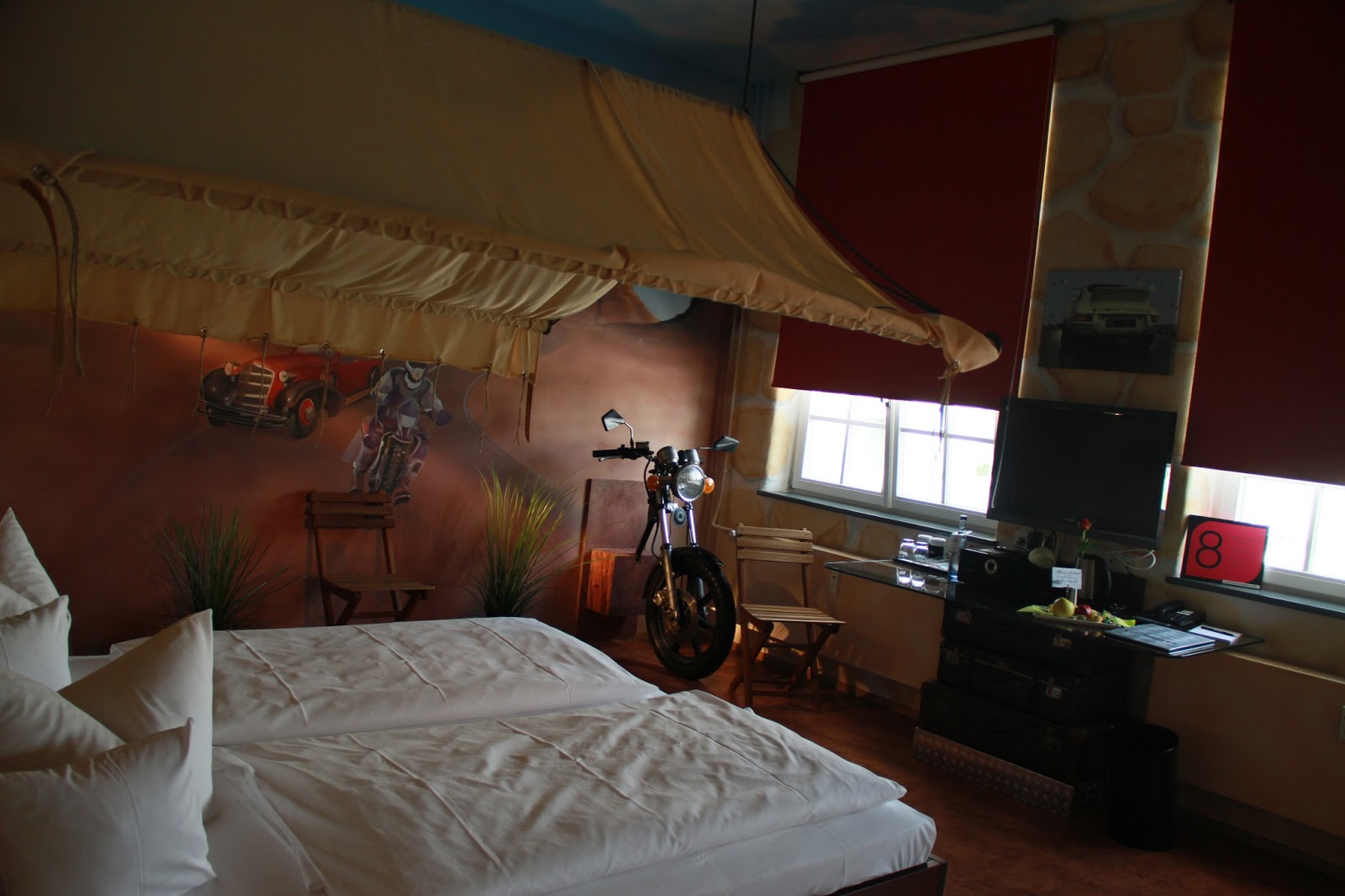Das Sommerfest im Meilenwerk in Böblingen war dagegen so gut wie unbekannt (zumindest meinem Freundeskreis). Nichtsdestotrotz war dies ein durchaus netter und gemütlicher Nachmittag. Neben dem Proviant bot dieses Sommerfest u. A. eine Old-Timer-Ausstellung vor den Türen des V8-Hotels verbunden und der Hotel an sich hat seine Türe für die Besucher aufgemacht. Die coolen Themenzimmer – selbstverständlich rund um das Thema „Auto“ – sind auf jeden Fall einen Besuch wert, vielleicht auch als Hotelgast mal am Wochenende 😉 In meinem Blog genießen sie nun ihre eigene „Fotoausstellung“.