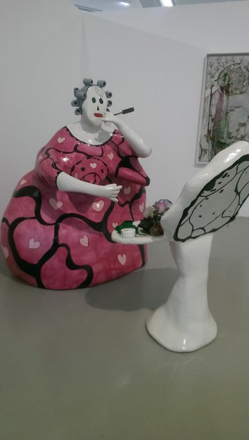 Während eine zeitgenössische Ausstellung (Gott sei Dank, eine temporäre!) mich wieder dazu gebracht hat, die Frage zu stellen „Wieso bin ich nicht so clever, dass ich Müll mit Neon-Stöcken zusammenbinden und das Ganze als ein Kunstwerk vermarkten kann?“, eröffnete das nächste Stockwerk für mich die Welt von Niki de Saint Falle – einer Frau mit einer außergewöhnlichen Geschichte und den genau so außergewöhnlichen Werken.
